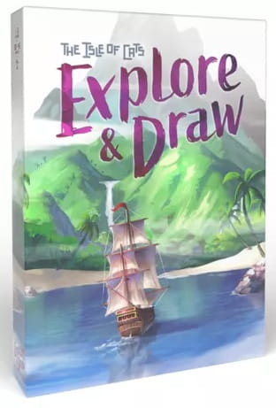 The Isle of Cats Explore & Draw features gameplay like The Isle of Cats, but with players now choosing a set of cards each round instead of drafting, and then drawing their discoveries onto their boat.