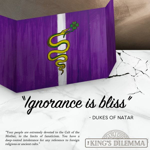 Musisz dbać o prosperowanie królestwa jednocześnie szukając korzyści dla własnego domu; ta walka o władzę może doprowadzić królestwo do wojny, głodu lub zamieszek lub może wygenerować bogactwo i dobrobyt. Będzie to zależeć od twoich wyborów! Rzecz w tym, że każda decyzja ma swoje konsekwencje – to co może być korzystne dla królestwa może być nie opłacalne dla twojego rodu.