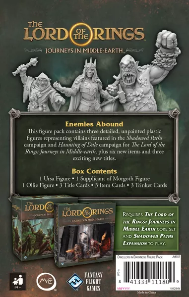 Whether you are tackling the new challenges of Haunting of Dale or reexploring the trials of the Shadowed Paths campaign, you will face off against powerful villains, such as the Supplicant of Morgoth and Ollie the Troll. With the Dwellers in Darkness Figure Pack, you can bring those villains to life with new premium figures, along with one for the mysterious and sinister shade featured in Haunting of Dale.