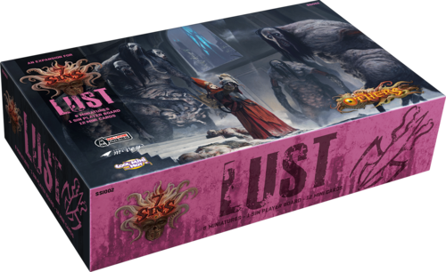 The Lust Expansion box comes with Avatar, Controller, 6 Abominations, Sin board and 12 sin cards.