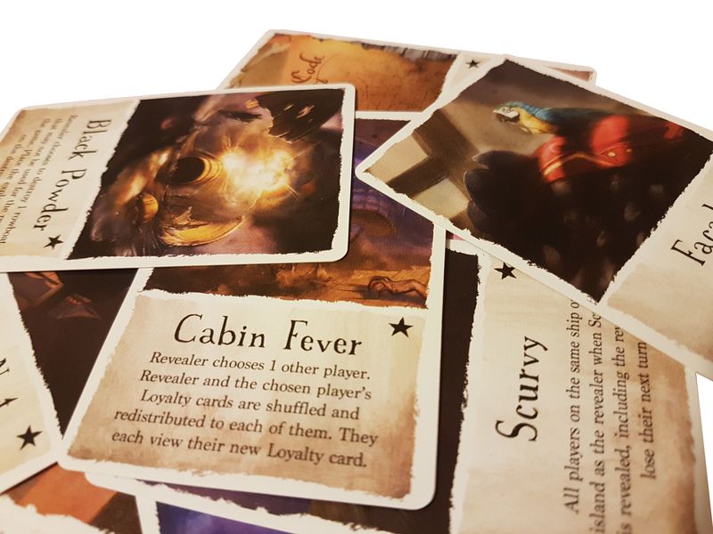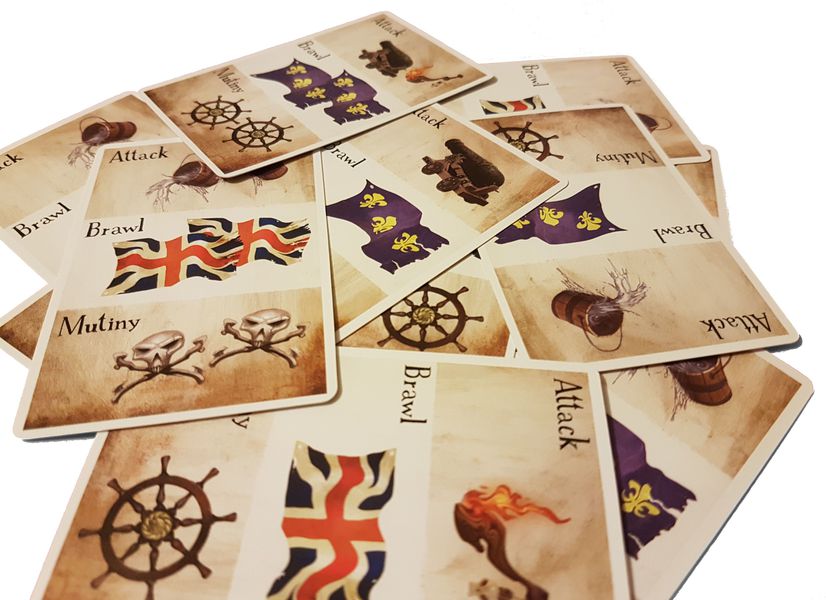Vote cards also play a key role in the game. Each Vote card has three sections - one each for Attacks, Mutinies, and Brawls. Players must put themselves in the best position to use their Vote cards, since their hand of Vote cards may not always be ideal based on their pawn location. For example, sometimes it may be worth putting in Water, causing an attack to fail, in order to save a Crossbones card for when you want to Mutiny against your captain.