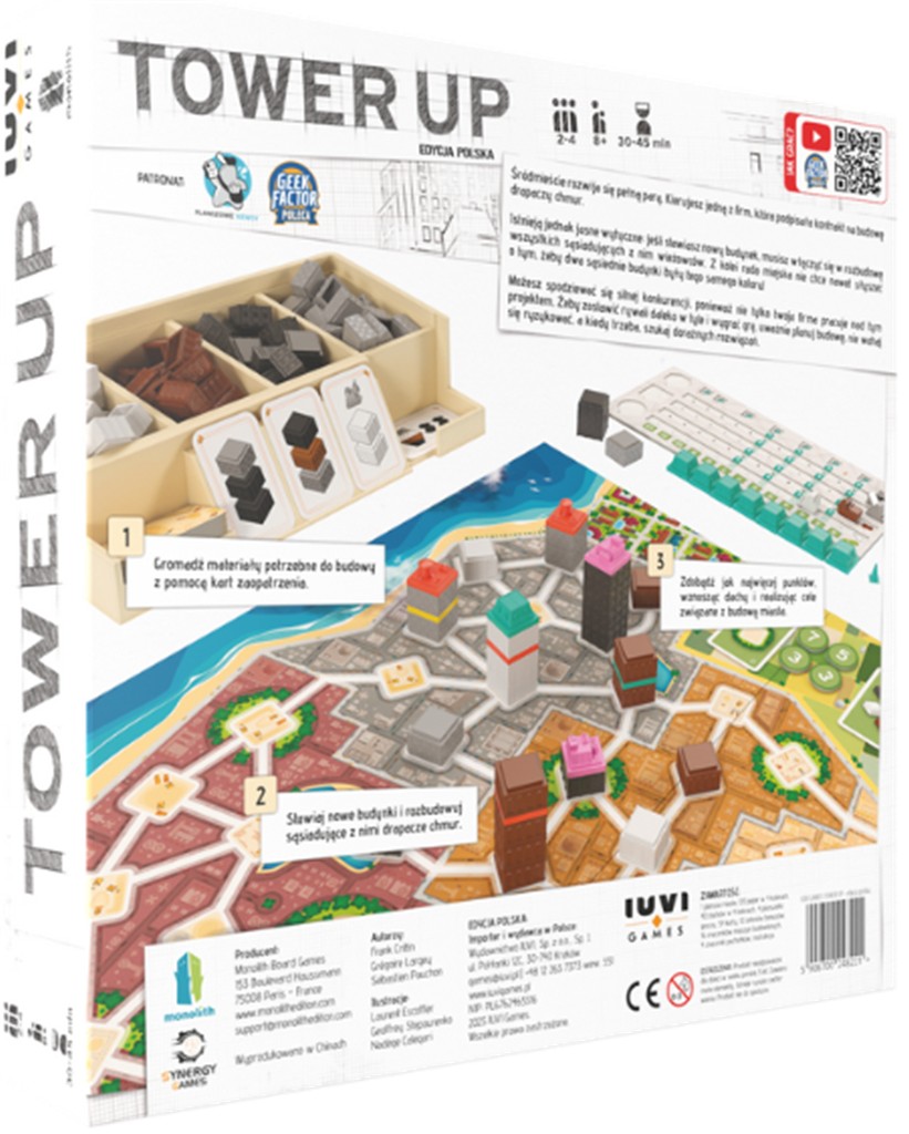 Tower Up to gra, która pobudza wyobraźnię i wymaga sprytu. Wznosząc się coraz wyżej, musisz pamiętać, że planowanie i umiejętność przewidywania ruchów rywali są kluczem do wygranej. Czas na budowę - czy zdołasz zostawić konkurencję w tyle?