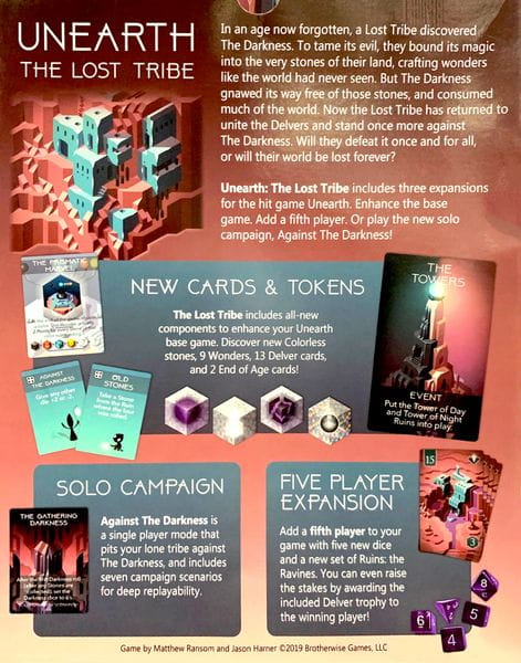 - The Lost Tribe includes all-new components to enhance your Unearth base game. Discover new Colorless stones, 9 Wonders, 12 Delver cards and 2 End of Age cards!