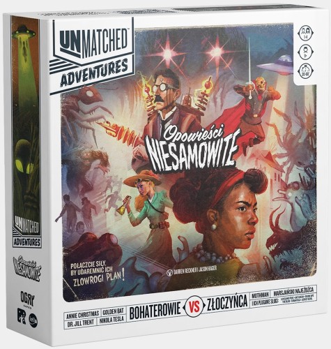 Unmatched Adventures: Opowieści Niesamowite to zupełnie nowa odsłona popularnej serii pojedynkowej. Tym razem w ręce graczy trafia samodzielna kooperacyjna gra zawierająca także wariant solo. W Opowieściach Niesamowitych gracze mierzą się ze złoczyńcami oraz ich niegodziwymi pomocnikami.