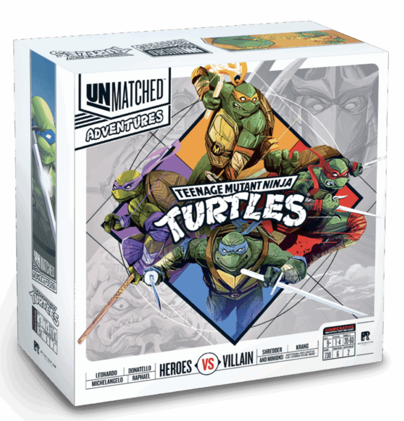 Unmatched Adventures: Teenage Mutant Ninja Turtles to drugi tytuł w kooperacyjnej serii Unmatched Adventures. Zagraj jako Leonardo, Raphael, Donatello i Michelangelo, aby pokonać Shreddera lub odeprzeć Kranga. Dołączą do nich także liczne postacie ze świata TMNT.
