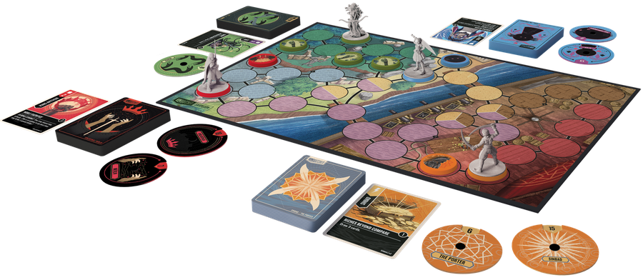 The game includes a double-sided board with two different battlefields, pre-washed miniatures for each hero, and custom life trackers that's brought to life with the stunning artwork of Oliver Barrett and the combined design teams of Restoration Games and Mondo Games.