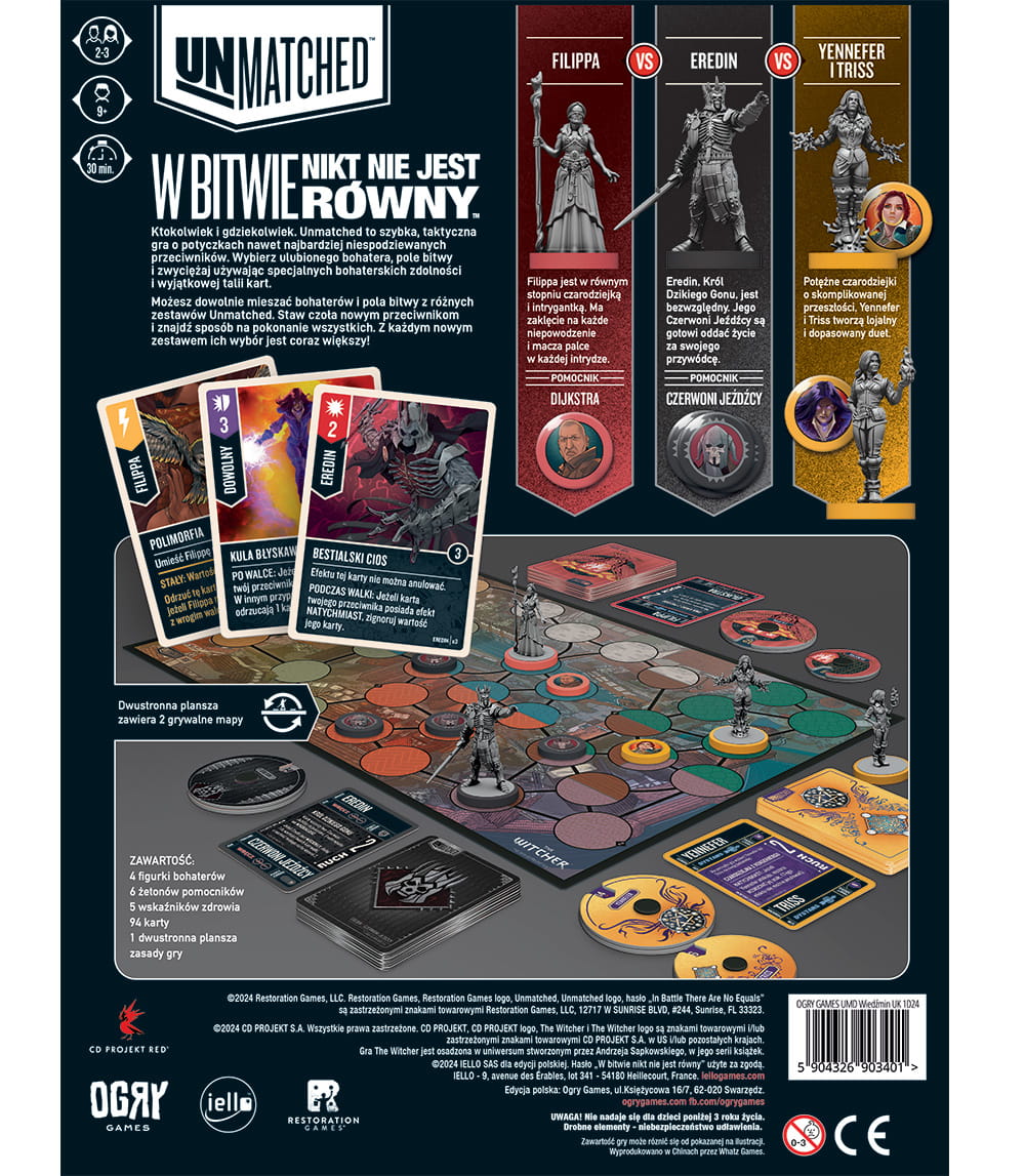 Unmatched to gra figurkowa o pojedynkach postaci z różnych krain i epok, od herosów znanych z mitów i legend, do bohaterów książek i filmów. Każdy z nich dysponuje własną talią kart, która wyraża jego wyjątkowy styl walki. Możesz mieszać i zestawiać bohaterów z dowolnych zestawów Unmatched, ale pamiętaj: ostatecznie zwyciężyć może tylko jeden.