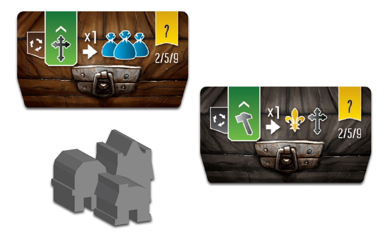 - Thick player boards with slots for housing the new Chest Tiles, which add anew element to the tableau management for players to explore