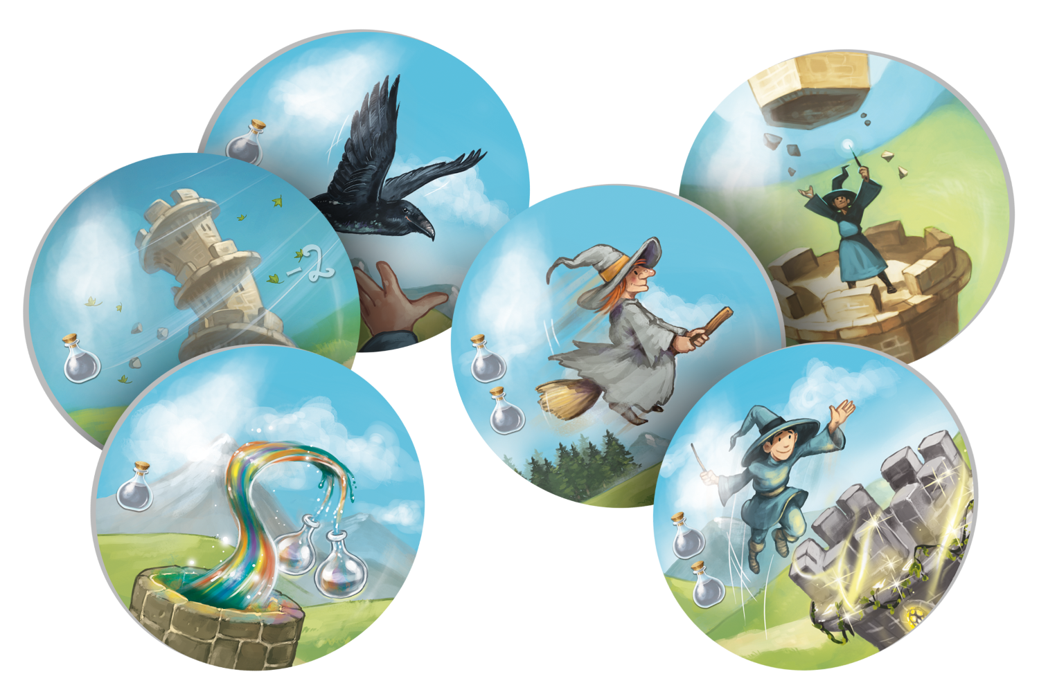 - Magiczna wieża to wyjątkowe miejsce zapewniające dostęp do czarów. Ilekroć ruch czarodzieja zakończy się na tym polu, gracz może natychmiast użyć 1 z 5 dostępnych w danej grze zaklęć bez zużywania napełnionych kolb. Co więcej, takie użycie czaru nie liczy się do limitu czaru na turę.