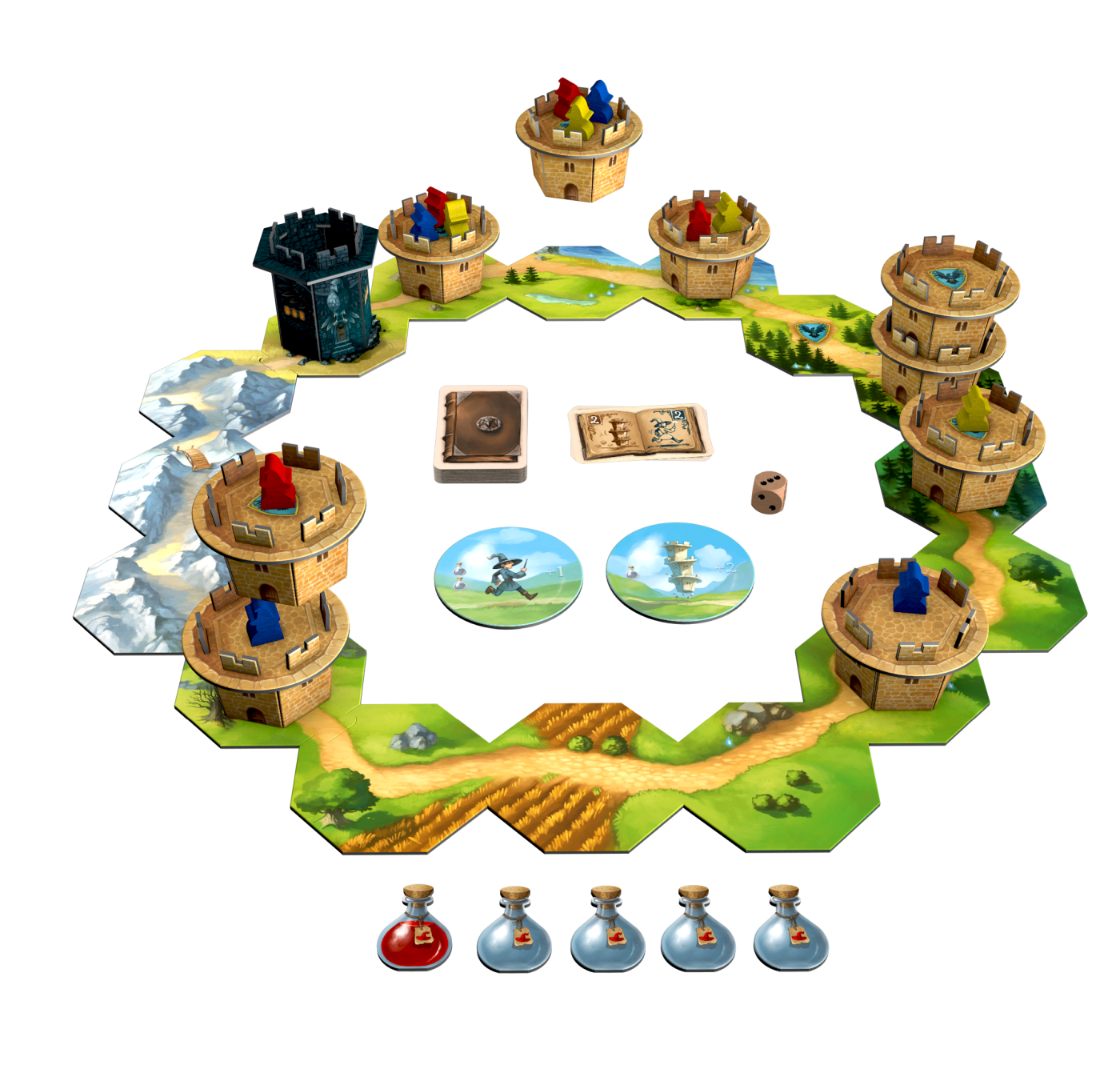 - Jeśli ruch wieży zakończy się na polu albo na wieży z pionkami czarodziejów, zostają oni uwięzieni. Gracz, który uwięził w ten sposób jednego albo więcej czarodziejów, napełnia jedną ze swoich pustych kolb magicznym eliksirem.