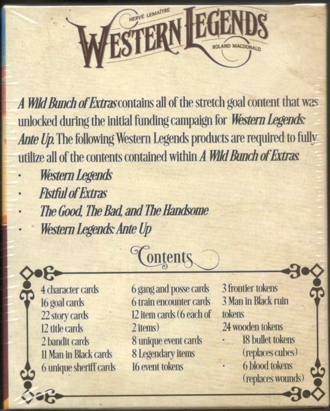 The Wild Bunch of Extras expansion includes all the unlocked stretch goal content unlocked during the 2019 Kickstarter for Western Legends: Ante Up. Complete with new variants, characters, deluxe components, and an expanded card pool to add even more options and variety to your games!