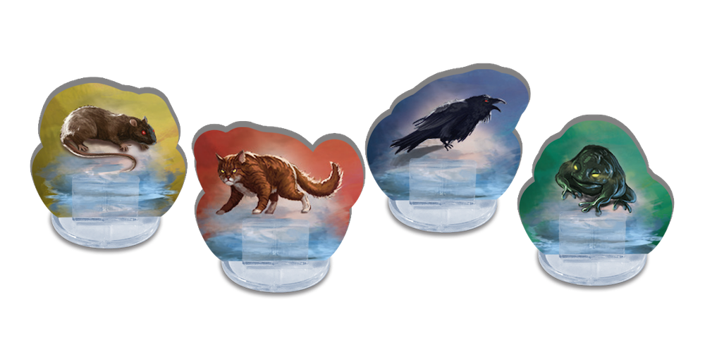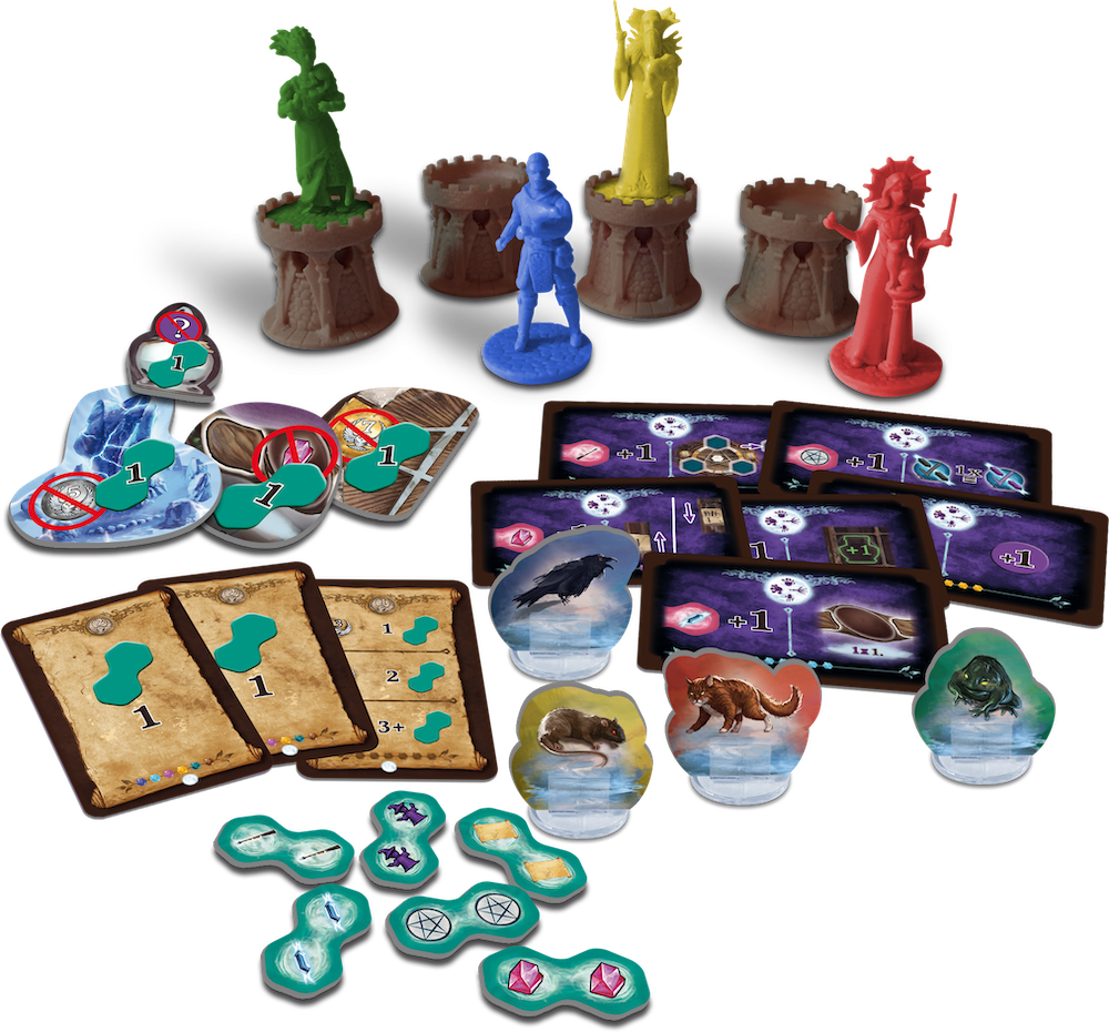 - Arcymistrzów, którzy zastępują duże figurki wiedźm z gry podstawowej. Duże wiedźmy możemy usunąć lub przyjąć dla ich użycia nową, specjalną zasadę opisaną w instrukcji.