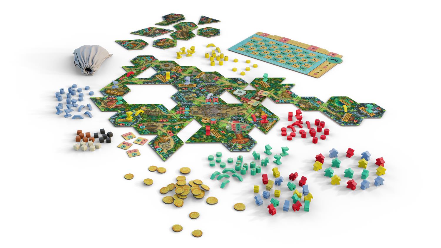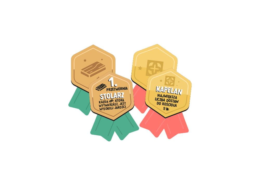 Możecie zdobywać punkty na wiele sposobów: dostarczając surowce do kościoła, wznosząc budowle, sprzedając na targu, budując drogi, przetwarzając surowce, osiągając kamienie milowe i zdobywając nagrody, a także tworząc silną sieć dostaw. Wszystko to przybliży cię do zostania najhojniejszym ofiarodawcą i zwycięstwa!