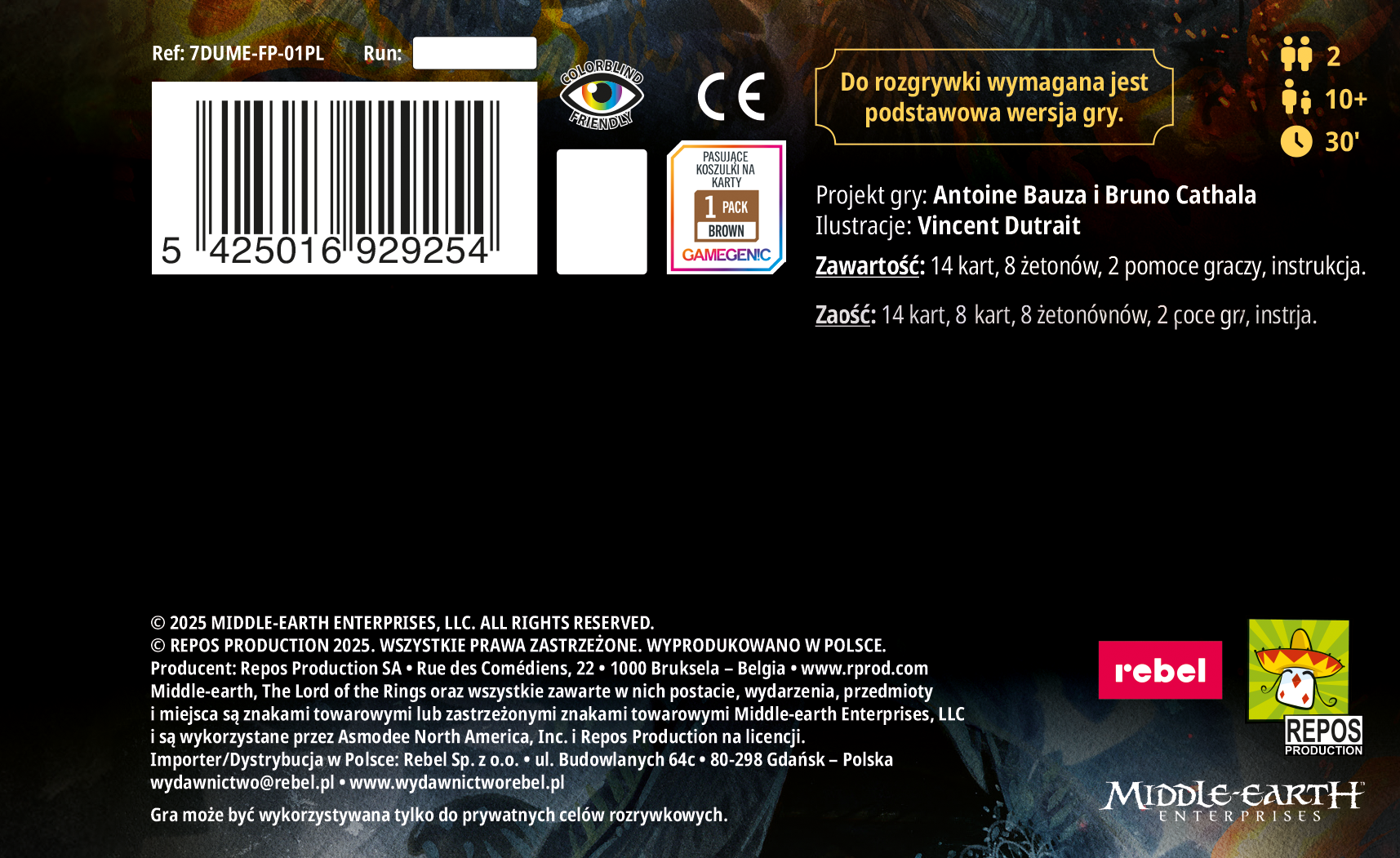 | UWAGA! Ten dodatek nie jest samodzielną grą. Do rozgrywki wymagana jest podstawowa wersja gry Władca Pierścieni: Pojedynek o Śródziemie |
