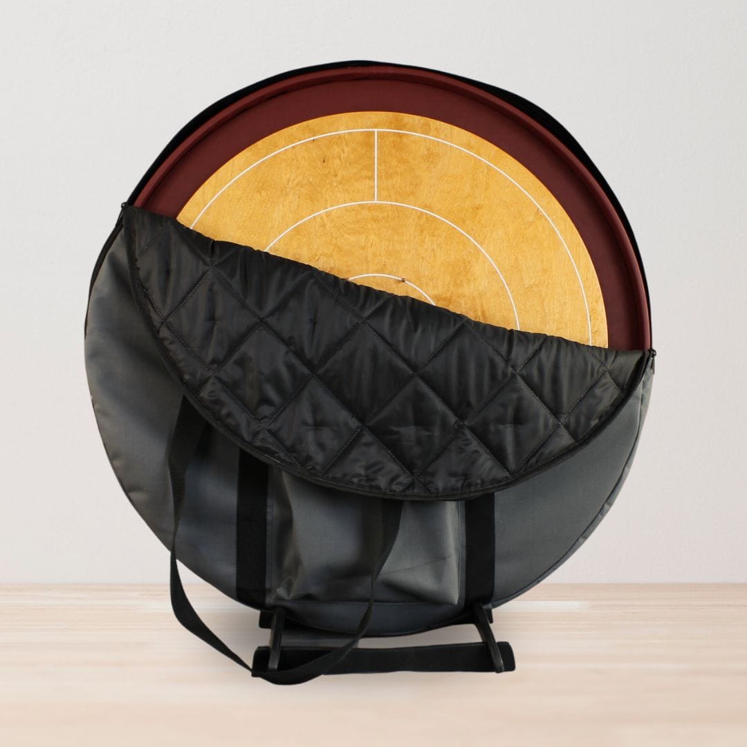 Dzięki wygodnemu paskowi na ramię, Woodestic Crokinole Tournament Carry Case możesz zabrać ze sobą wszędzie – na turniej, do znajomych czy po prostu na świeże powietrze.