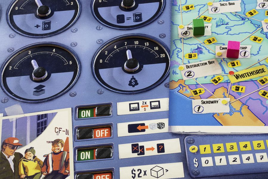 Posiadasz swój samolot, którym będziesz starał się dostarczać klientów, reprezentowanych przez kości, do poszczególnych lokacji wyspy Jukon. Im większe dystanse pokonasz, tym większy będzie twój dochód. Zadbaj jednak o odpowiednią ilość paliwa! Dodatkowy bonus na koniec otrzymasz, jeśli w trakcie gry odwiedzić jak najwięcej lokacji. Pomogą ci w tym usprawnienia twojego samolotu, które poczynisz w trakcie rozgrywki. Każdy gracz startuje z takim samym hydroplanem, ale od ciebie zależy, które osiągi postanowisz rozwinąć w twojej maszynie. Zarób dla swojej firmy najwięcej pieniędzy, a zostaniesz ogłoszony zwycięzcą.