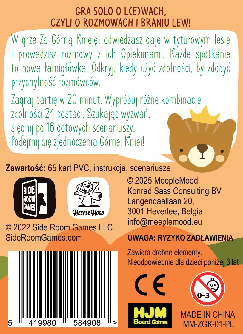 W grze Za Górną Knieję! odwiedzasz gaje w tytułowym lesie i prowadzisz rozmowy z ich Opiekunami. Każde spotkanie to nowa łamigłówka. Odkryj, kiedy użyć zdolności, by zdobyć przychylność rozmówców.