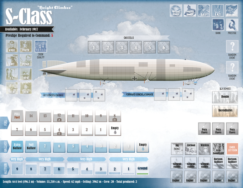 Zeppelin Raider: Imperial German Naval Airships is a solitaire, tactical level game placing you in command of one of several models of WWI Zeppelin dirigibles as part of the Imperial German Navy. Your mission is to destroy as much English war facilities as possible via bombing raids, or to conduct reconnaissance over the North Sea...and still survive and come home.