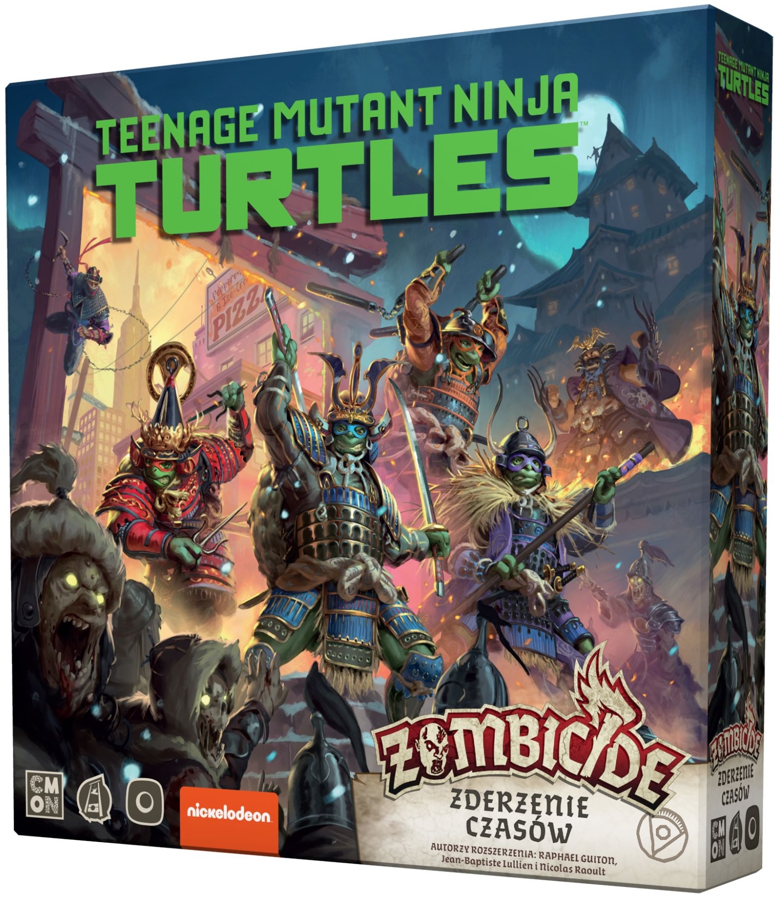10 nowych misji w tym dodatku wiedzie ekipę Żółwi Ninja przez średniowieczne ulice świata Zombicide. Na ich drodze stają zombie, Foot Ninja i samego Shredder. Ta dziwna, nowa kraina jest pełna mistycznej energii, którą drużyna żółwii może wykorzystać w swoich atakach, aby skuteczniej pokonać zombie. I okazuje się, że jest tam też trochę pizzy!
